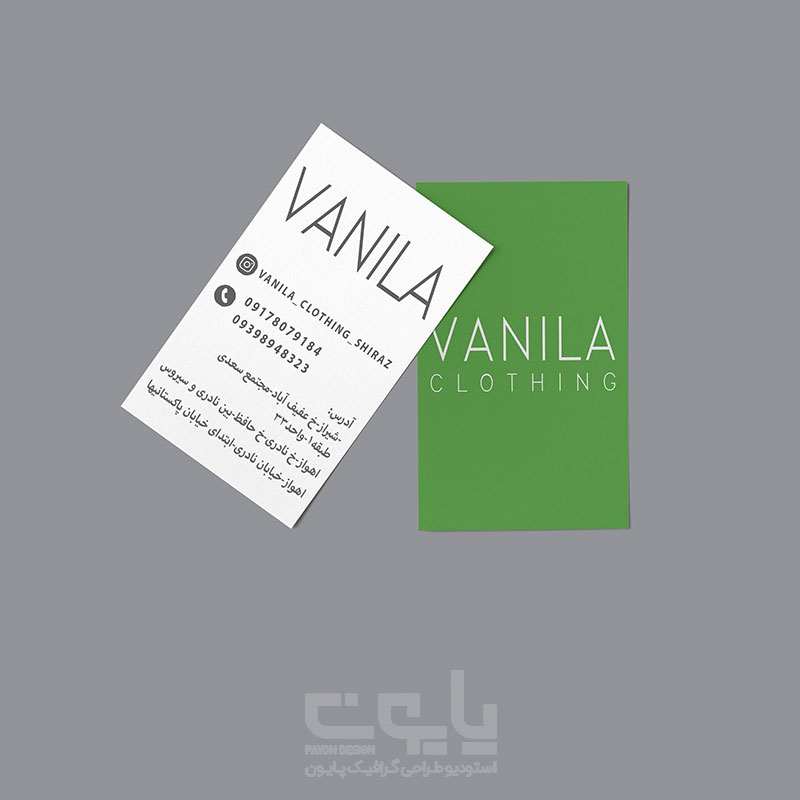 طراحی کارت ویزیت فروشگاه لباس وانیلا
