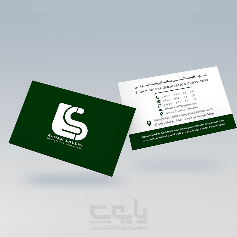 طراحی کارت ویزیت مشاور مهاجرتی الهام صالحی